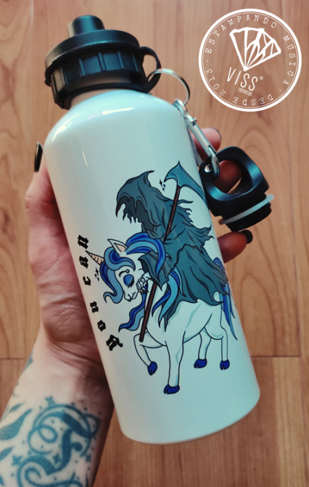 Doble tapa incluida: a rosca y mosquetón para colgar.